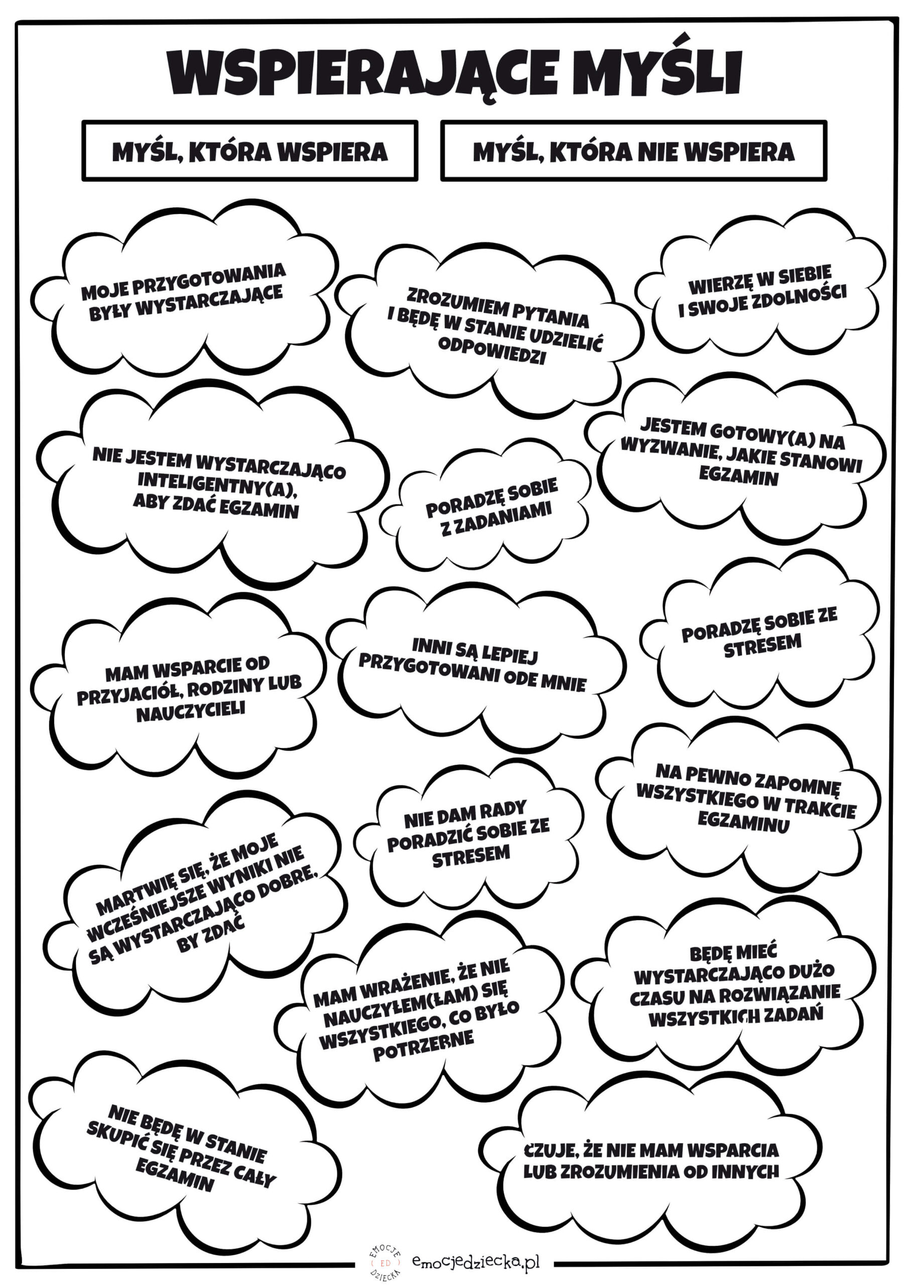 Wspierające myśli przed egzaminem – karta pracy